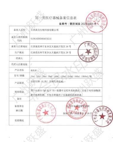 鄂孝械備20170035號/湖北安立信醫(yī)療實業(yè)有限公司清洗液