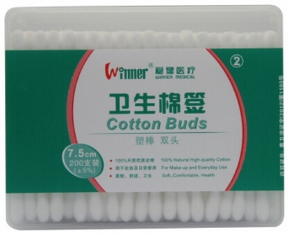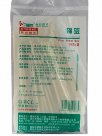 由醫(yī)用脫脂棉、木(塑、竹、紙)棒為原料,經(jīng)卷繞、包裝制成。