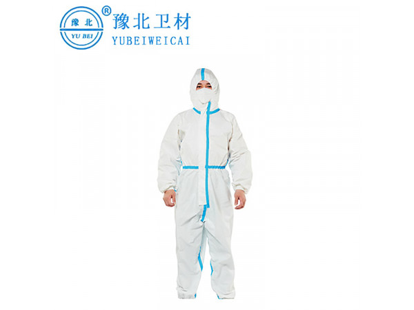 醫(yī)用防護(hù)服由連帽上衣、褲子組成,防護(hù)服由PP紡粘法非織造布或PET水刺法非織造布和PE膜復(fù)合而成,袖口、腳踝口為彈性收口,帽子面部收口及腰部收口可采用彈性收口、拉繩收口或搭扣的方式。