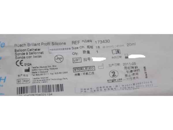 國食藥監(jiān)械(進(jìn))字2011第2663325號/Teleflex medical Private Limited 有效期至:2015-10-18一次性使用無菌導(dǎo)尿管