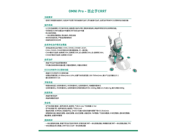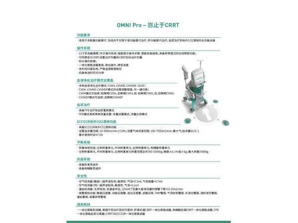 該產(chǎn)品在體外血液凈化治療過程中提供動(dòng)力及安全監(jiān)測(cè),與兼容的一次性使用耗材聯(lián)合使用,臨床適用于體重30kg及以上患者,支持連續(xù)性腎臟替代治療、體外二氧化碳清除治療、血漿置換治療。