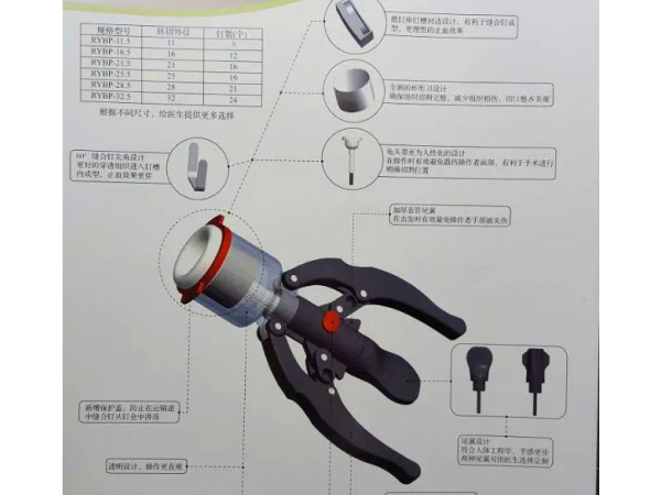 一次性包皮切割吻合器主要由鐘形龜頭座、釘倉套(尼龍)、保險塊(ABS)、手柄(尼龍)、外殼(ABS)、抵釘座(12Cr18Ni9)、釘倉(ABS)、調(diào)節(jié)旋鈕(ABS)、環(huán)形刀(12Cr18Ni9)、膠圈和吻合釘(00Cr18Ni14Mo3)組成。經(jīng)縫合后的縫合口應(yīng)能承受不小于3.6Kpa的壓力。產(chǎn)品根據(jù)抵釘座內(nèi)徑可分為13)18)22)25)30、34六種規(guī)格。產(chǎn)品應(yīng)無菌。