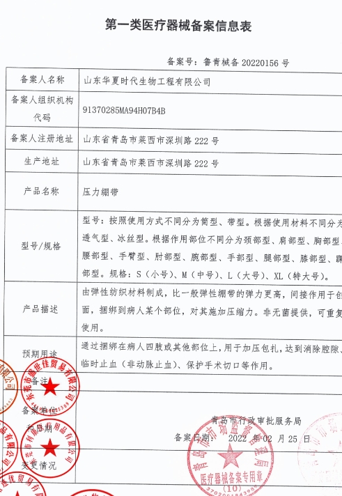 魯濟械備20220103號/山東邦佰諾醫(yī)療科技有限公司壓力繃帶