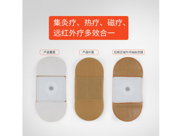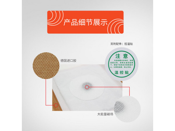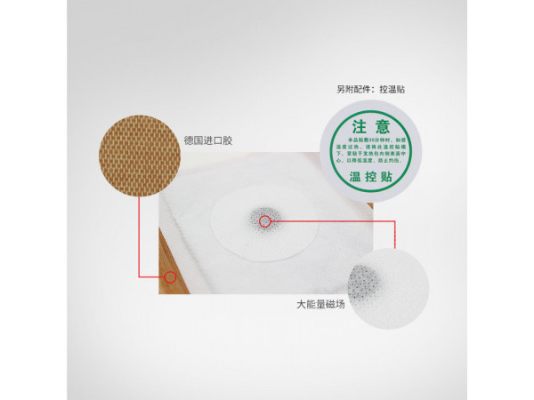 該產(chǎn)品由醫(yī)用無(wú)紡布、遠(yuǎn)紅外布、醫(yī)用膠、離型紙、磁片、發(fā)熱袋(含有還原鐵粉、活性炭、蛭石粉、醫(yī)用樹脂、鹽、水)組成。