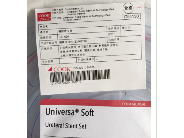 輸尿管支架及套裝由支架、定位器、導(dǎo)絲和推送器組成(型號(hào)不同,包裝內(nèi)包含的組件不同)。環(huán)氧乙烷滅菌,一次性使用。