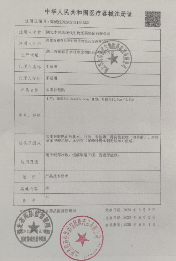 青械注準(zhǔn)20242140024/青海慈仁嘉醫(yī)療器械有限公司 有效期至:2029-10-24醫(yī)用護眼貼