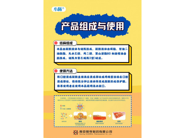 通過在潰瘍表面形成保護(hù)層,物理遮蔽創(chuàng)口,緩解因口腔潰瘍、口腔炎癥、牙箍或假牙造成的微小創(chuàng)口所帶來的疼痛。