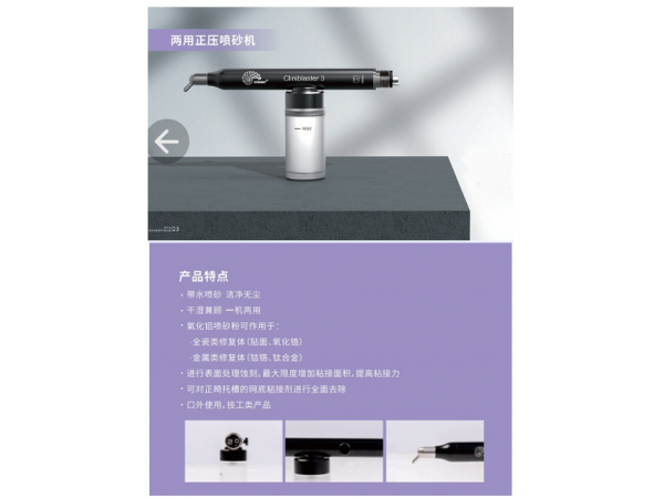噴砂潔牙機用于去除牙體表面所粘著的牙垢、著色斑或拋光牙表面用。