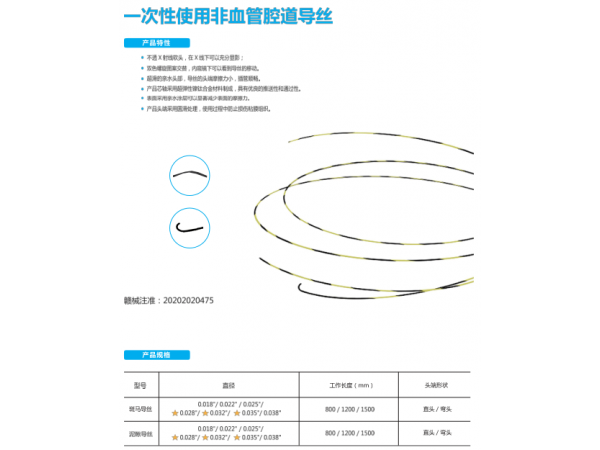 湘械注準(zhǔn)20182020006/湖南依微迪醫(yī)療器械有限公司 有效期至:2028-01-17一次性使用非血管腔道導(dǎo)絲