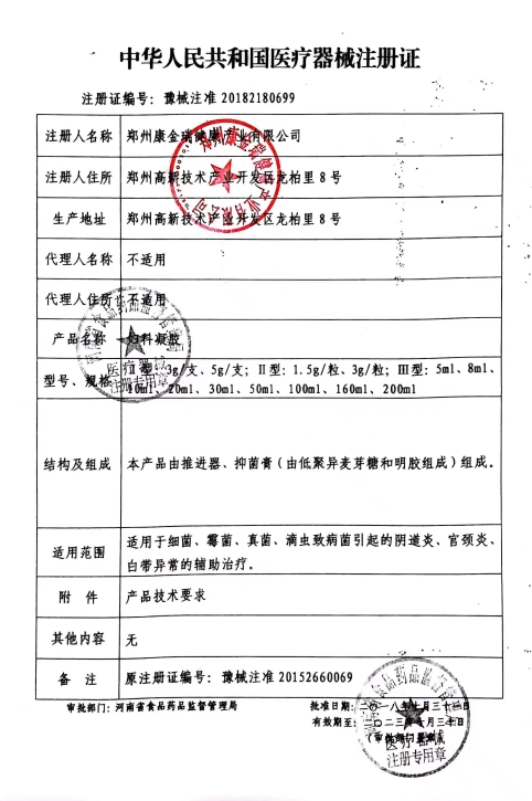 晉械注準20242180120/山西康必健醫(yī)藥集團有限公司 有效期至:2029-07-11婦科凝膠