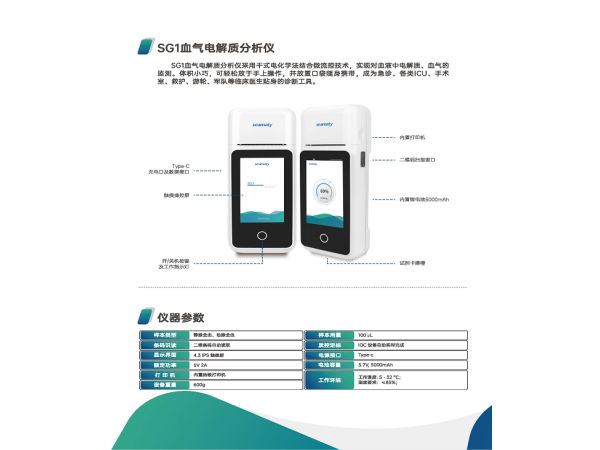 該產(chǎn)品采用電化學(xué)原理,與配套的血氣電解質(zhì)試劑卡共同使用,在臨床上用于測量人體血液樣本中的K+、Na+、Cl-、Ca2+、pH、Glu、Lac、pCO2、pO2、Hct的含量。