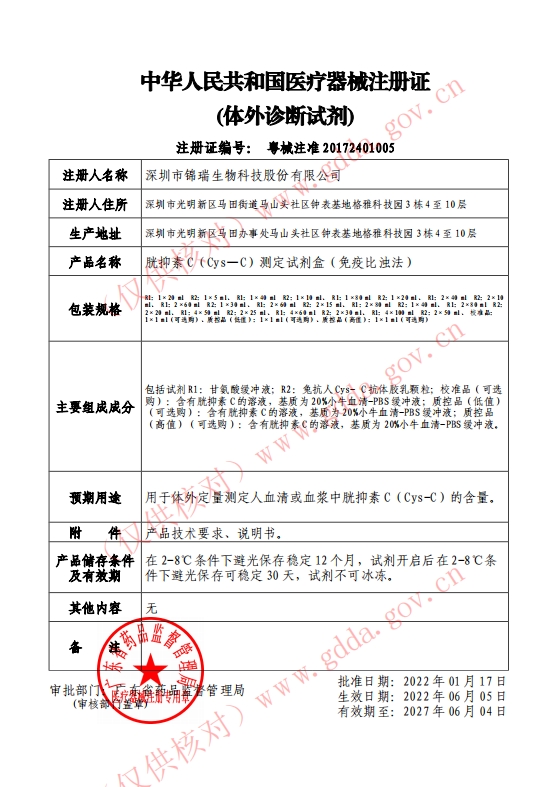 用于體外定量測(cè)定人血清或血漿中胱抑素C(Cys-C)的含量。