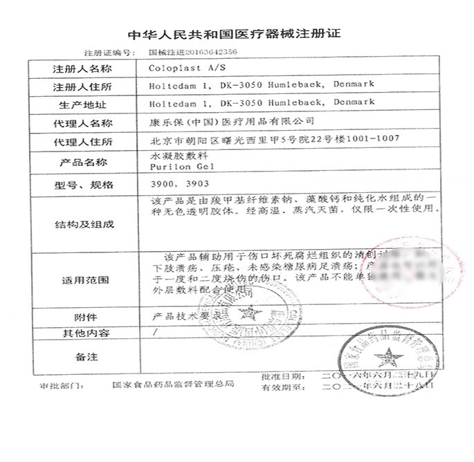 該產(chǎn)品輔助用于傷口壞死腐爛組織的清創(chuàng)過程,如:下肢潰瘍、壓瘡、未感染糖尿病足潰瘍;產(chǎn)品也可以用于一度和二度燒傷的傷口。該產(chǎn)品不能單獨(dú)使用,需與外層敷料配合使用。