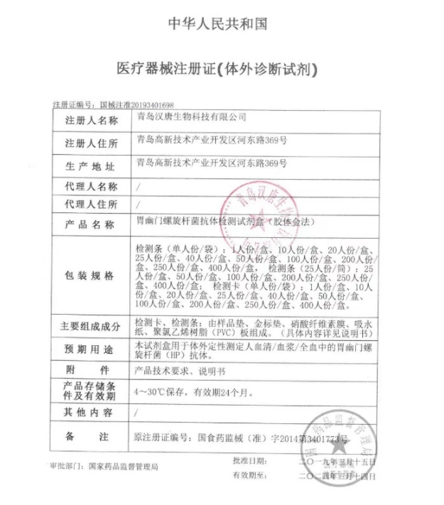 | 山東省醫(yī)用耗材限價(jià)掛網(wǎng)數(shù)據(jù) | 胃幽門(mén)螺旋桿菌抗體檢測(cè)試劑盒(膠體金法) | 國(guó)械注準(zhǔn)20193401698 | 檢測(cè)卡(單人份/袋):40人份/盒 | 880.0000 |