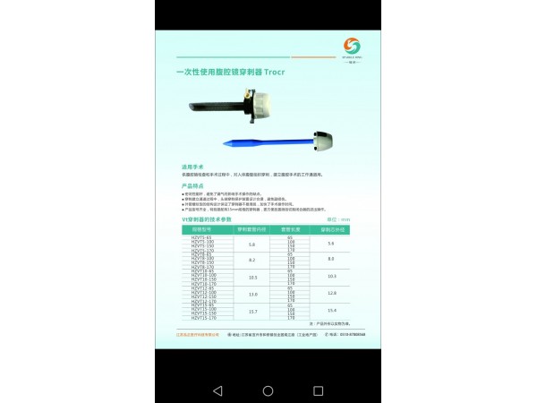 供腹腔鏡檢查和手術(shù)過程中,對人體腹壁組織穿刺,建立腹腔手術(shù)的工作通道用。