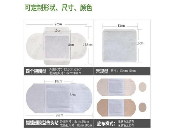 熱奄包由發(fā)熱袋、敷膜無紡布和含有壓敏膠的無紡布及硅油紙制成。