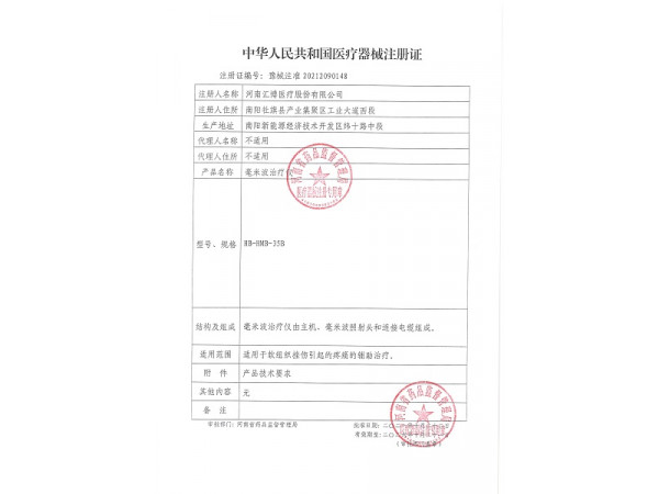 豫械注準(zhǔn)20212090147/希迪克康養(yǎng)產(chǎn)業(yè)發(fā)展有限公司 有效期至:2026-10-21毫米波治療儀
