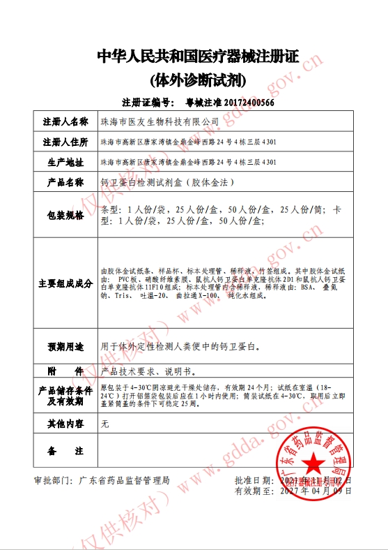 用于體外定性檢測人糞便中的鈣衛(wèi)蛋白。