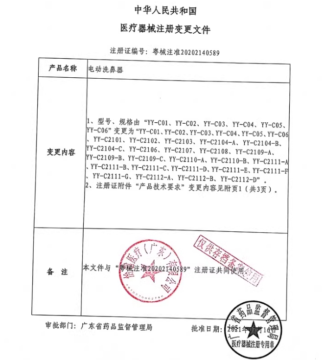 粵械注準(zhǔn)20172540796/怡越醫(yī)療(廣東)有限公司 有效期至:2027-05-15電動(dòng)洗鼻器