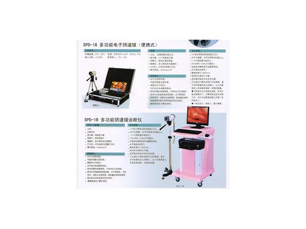 多功能電子陰道鏡主要由攝像機、顯示器、計算機、軟件、固有熒光、打印機組成,按結構(便攜式、推車式)、功能不同分為三種。