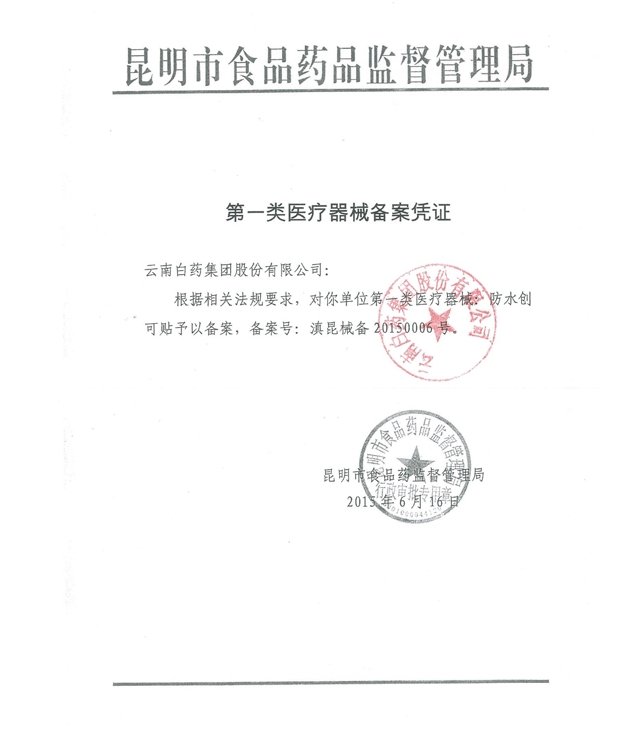 國(guó)食藥監(jiān)械(進(jìn))字2013第1642408號(hào)/ 有效期至:2017-06-17防水創(chuàng)口貼
