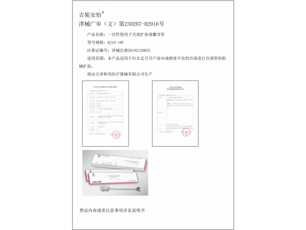 豫械注準(zhǔn)20182120024/河南健和實(shí)業(yè)有限公司 有效期至:2023-01-18一次性使用子宮頸擴(kuò)張球囊導(dǎo)管