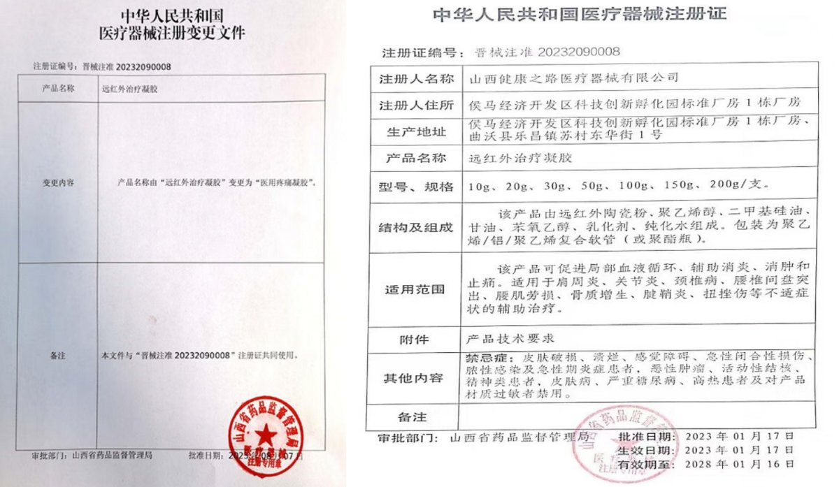 晉械注準(zhǔn)20232090053/山西健康之路醫(yī)療器械有限公司 有效期至:2028-05-08遠(yuǎn)紅外治療凝膠