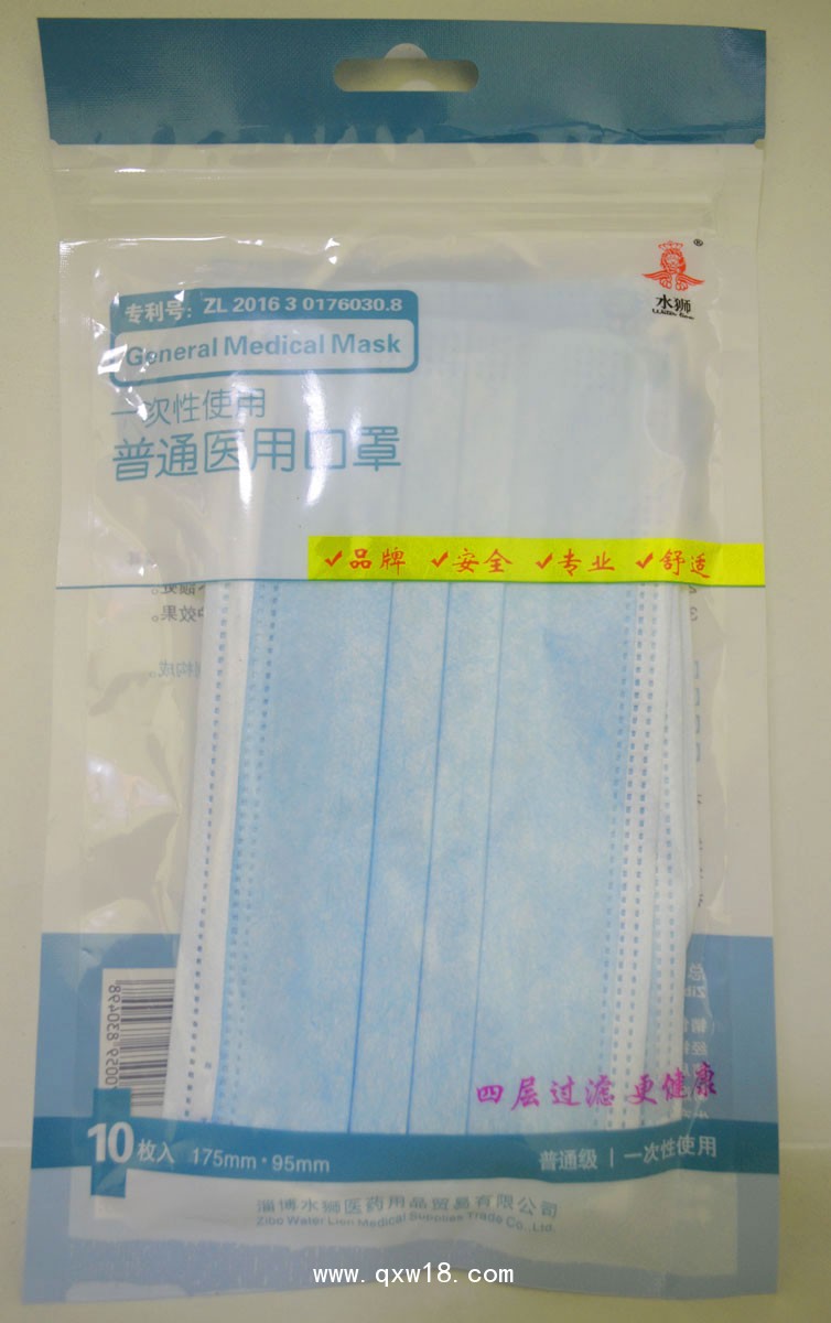 最新水獅一次性醫(yī)用口罩平面藍(lán)色10個(gè)/包招商
