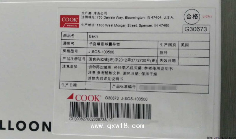 最新美國庫克Bakri 子宮填塞球囊導管J-SOS-100500招商