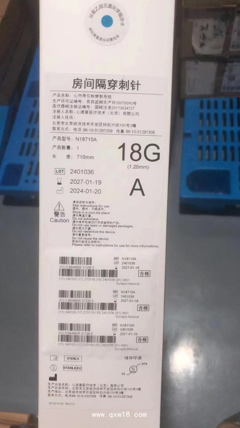 產(chǎn)品名:心諾普心內(nèi)導引鞘組及附件/房間隔穿刺針N18710A