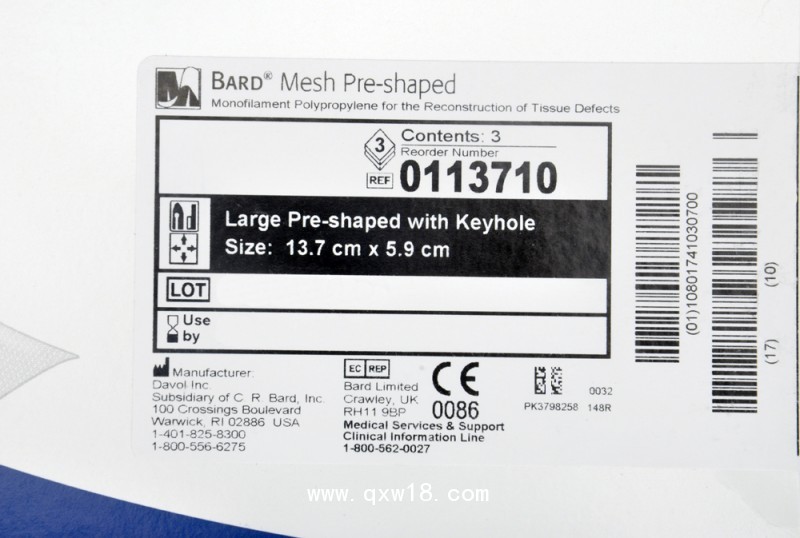 最新美國(guó)巴德BARD疝修補(bǔ)平片和預(yù)裁補(bǔ)片0113710招商