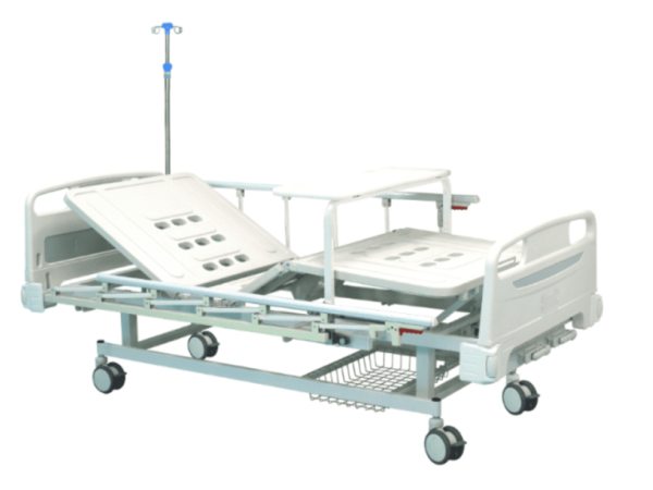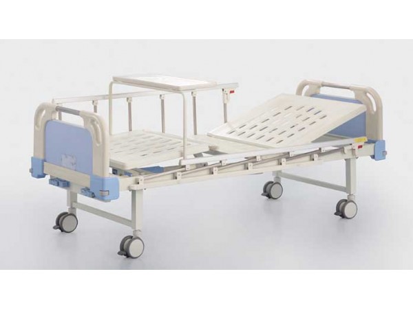 A25ABS床頭條式雙搖床尺寸:2150*950*500(mm)產品功能:背部調節(jié)605,腿部調節(jié)355;全覆式鋁合金護欄(選配);不銹鋼搖把;床