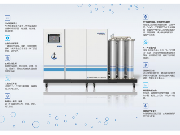 至靜雙級反滲透水處理系統(tǒng)基本配置功能(1)全自動源水變頻加壓系統(tǒng)一套;(2)全自動砂濾罐、軟化器各一套,活性炭罐雙套;(3