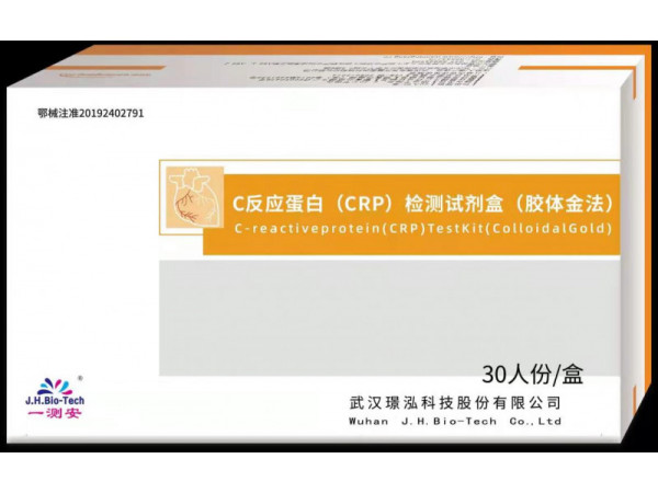 【產(chǎn)品名稱】通用名:C反應蛋白檢測試劑盒(膠體金法)商品名:CRP檢測試劑盒英文名:C-reactive Protein Test Kit (Colloidal Gold) 【包裝規(guī)格】1人份/袋、30人份/盒?!绢A期用途】C反應蛋白檢測試劑盒(膠體金法)用于測定臨床標本中的C反應蛋白(CRP)的含量,用于冠心病一級預防和穩(wěn)定性心絞痛或急性冠脈綜合癥或炎癥的診斷。【檢驗原理】C反應蛋白檢測試劑盒(膠體金法)運用膠體金法原理制成,C反應蛋白與膠體金標記物結(jié)合,結(jié)合物又與固定在試紙上的抗C反應蛋白抗體發(fā)生特異性結(jié)合顯示測試線(T線),游離的膠體金標記物移動至對照區(qū)和質(zhì)控區(qū)與相應的抗體發(fā)生特異性結(jié)合顯示對照線(R線)和質(zhì)控線(C線)?!局饕M成成分】本產(chǎn)品由硝酸纖維素膜,玻璃纖維,濾紙,塑料片等組成。其中硝酸纖維素膜固定有抗CRP抗體,羊抗鼠IgG多克隆抗體,玻璃纖維固定有膠體金標記的抗CRP單克隆抗體?!井a(chǎn)品性能指標】本產(chǎn)品對C反應蛋白的最低檢出量為1ug/ml。