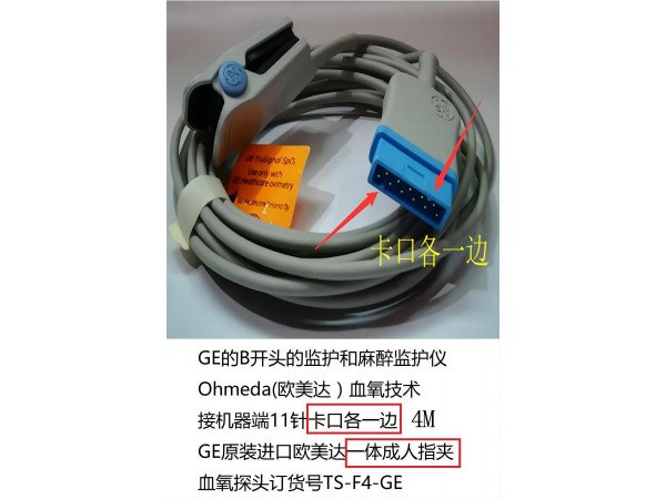 GE的B開頭的監(jiān)護和麻醉監(jiān)護儀,Ohmeda(歐美達)血氧技術,接機器端11針卡口各一邊GE原裝進口歐美達Ohmeda血氧技術一體成人指夾血