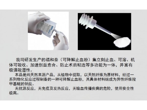 該產(chǎn)品是純植物型液體止血材料,可全科使用。通過公司專利的生物共混技術制成的具有三維網(wǎng)狀支架結(jié)構的復合生物材料。產(chǎn)品可用于