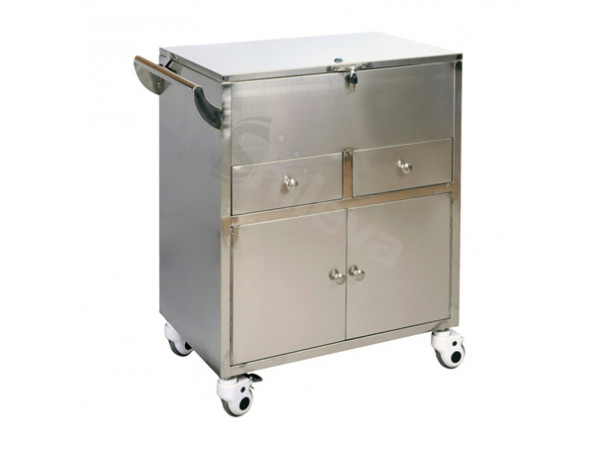 l主體采用優(yōu)質(zhì)鋁合金型材及不銹鋼噴塑而成,車體輕巧,移動靈活;l臺面采用優(yōu)質(zhì)304不銹鋼噴塑、抽拉式,下面放置一個藥盤。l配置