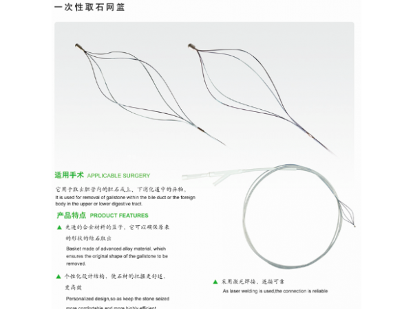 詳情描述【適用范圍】適用于取出膽管內(nèi)的膽結(jié)石或上下消化道中的異物?!臼褂梅椒ā縉RC型取石網(wǎng)籃與WL型取石網(wǎng)籃使用方法相同。1