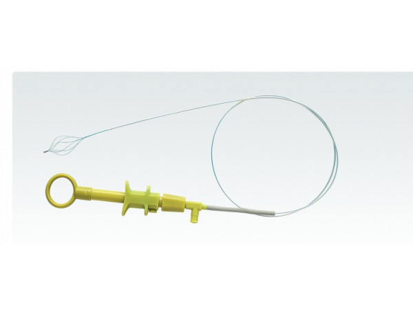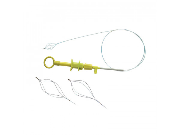 雙手手柄規(guī)格由把手、導(dǎo)管、膠圈、固定帽、前手柄、外鞘管、鞘管、拉索、網(wǎng)籃和頭端組成。單手手柄規(guī)格由后手柄、導(dǎo)管、把手、膠