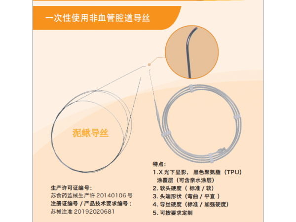 在內(nèi)窺鏡或X射線(xiàn)監(jiān)視下,進(jìn)入人體自然的非血管腔道,做引導(dǎo)用。