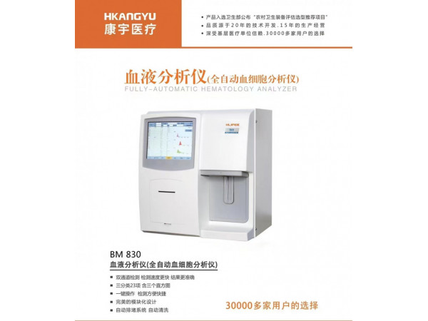 產(chǎn)品特點:1、雙(單)通道檢測,可自動定量加溶血劑。2、功能強大,可靠性高的嵌入式工控機設計3、精度高,速度快,自動化程度高,重復性好,功能齊全4、采用電阻抗法計數(shù),血液稀釋自動完成,測量過程無需人的介入5、白細胞三分類,可精確測量白細胞,紅細胞,血紅蛋白,血小板等22個項目6、儀器外觀美觀大方,結(jié)構(gòu)緊湊,8英寸TFT真彩LCD屏幕顯示,全中文用戶界面7、可以存儲至少10000份的全部樣本參數(shù)+3個直方圖,WINDOWS類似的操作菜單8、內(nèi)置打印機,并可接外置打印機,可以打印出美觀的中文檢驗報告