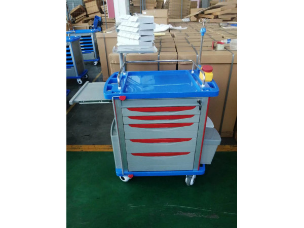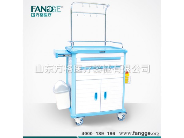 供應ABS搶救車,多功能ABS搶救車,方格牌搶救車型號:FG-A-01尺寸:783*504*995MM1.臺面采用ABS模具成型,車體輕便,容易清潔;上臺面配透明軟玻璃。2.立柱采用3MM厚度鋁合金型材,強度高,耐磨抗腐蝕,外形美觀精致;3.抽拉式ABS副工作臺設計,可以延長應用過程中的工作臺面。4.側(cè)板背板選用鋁合金板,不生銹,易清理,車體更輕便,顏色淡雅適合醫(yī)院環(huán)境。5.臺面均安裝不銹鋼圍欄,能有效阻擋推動過程中物品的滑出。安全中控鎖可以同時鎖上全部抽屜。6.五個ABS抽屜,兩個20格淺抽屜(內(nèi)部高度5CM),三個20格深抽屜(內(nèi)部高度12.5CM)。抽屜內(nèi)部有自由插片,可以隨意組合。7.抽屜選用高強度三節(jié)靜音滑軌,推拉順暢,安靜,無噪音,承載量大;8.底部四只靜音防纏繞高級靜音腳輪,雙剎車腳輪直徑Φ100mm,推行靈活承載量大。9.側(cè)面配備垃圾桶可以輕松摘離。10.有ABS推手,左側(cè)消毒液銳器桶網(wǎng)籃。11.車體背面配有心肺復蘇板,電源插座,鹽水升降架,金屬托盤。