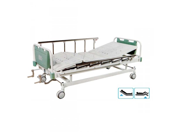 品名:PE-6雙搖病床規(guī)格:2150*960*500mm產(chǎn)品功能:背部調(diào)節(jié)≥75°,腿部調(diào)節(jié)≥35°;歐式四小護欄,上下翻轉(zhuǎn)結(jié)構(gòu);豪華中控腳輪