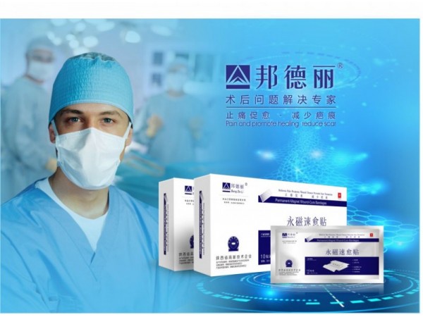 釹鐵硼永磁速愈貼集生物磁療、理療于一體,主要解除術(shù)后切口的疼痛、水腫、黏膜粘連,從而達(dá)到止痛、消腫、消炎、促愈、消疤,改善微循環(huán),具有防止疤痕的形成及陰雨天切口不適之感。