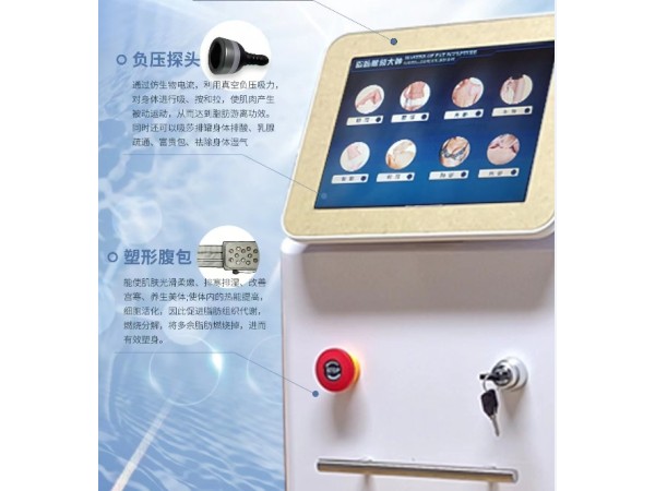 治療特點:爆脂、燃脂、擠壓,同時施治!非凡效果立桿見影,馬上可以測量尺寸減重、減尺寸、塑形同時進行,效果完美無膚色要求,適用面更廣術(shù)中治療舒適,無痛、無創(chuàng)傷無需準備治療階段,治療后無需恢復(fù)期,NO DOWN TIME 操作簡單,易學易用。系統(tǒng)特點一:超聲爆脂功能簡介 超聲和RF可以單獨使用,一機多能!真正實現(xiàn)功能多樣化! 二:三燃脂功能簡介 優(yōu)選進口射頻發(fā)生器,高能量、準確施治!連續(xù)、脈沖式輸出、自由可調(diào),治療更加靈活! 專家系統(tǒng)開機器指導(dǎo),操作簡單、易學易用無極治療頭感應(yīng)式設(shè)計,確保準確施治三:負壓揉脂簡介 優(yōu)選日本進口負壓泵,吸力強大,頻率穩(wěn)定,工作時間長!負壓和RF可以單獨使用,一機多能!真正實現(xiàn)功能多樣化! 時鐘控制,治療準確患者遙控操作,人機交流方便,避免客戶損傷! 系統(tǒng)功能 預(yù)留技術(shù)接口,系統(tǒng)自如升級電源模塊化設(shè)計,適合進出口,維修方便可聯(lián)機實現(xiàn)3種手具即插即用,功能強大!系統(tǒng)CPU密碼可控技術(shù),自由實現(xiàn)使用壽命、方便租賃合作銷售! 8.4寸真彩顯示屏幕,8.4英寸寬屏觸摸設(shè)計,人機交流更便捷,更準確!歐盟CE認證,權(quán)威保障 優(yōu)質(zhì)航空包裝,確保運輸可靠無損傷機器多種外形供客戶選擇OEM!適用癥:消除多余脂肪、減肥美體瘦身?收緊手臂、小腿、大腿、臀部、腰背部、腹部肌肉,重塑身形針對不同程度桔皮脂肪組織給予有效治療舒緩減壓鎮(zhèn)痛(例如關(guān)節(jié)痛、坐骨神經(jīng)痛),對皮膚組織進行有規(guī)律的機械有氧運動,迅速緩解壓力,消除疲勞。緊致肌膚,增強皮膚彈性,改善毛孔粗大,嫩白肌膚。激活膠原質(zhì),增進皮膚新陳代謝,深層且高強的淋巴引流將身體組織中的代謝廢物排除,達到全身淋巴排毒