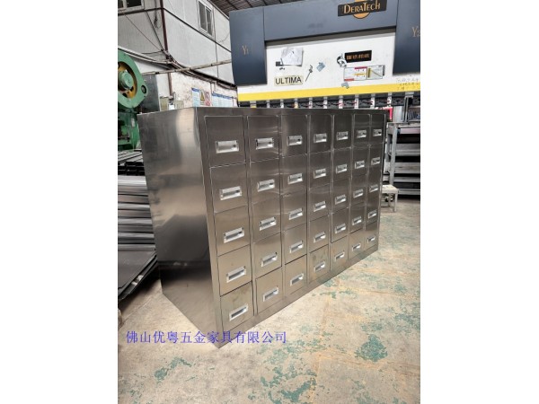 佛山市定做不銹鋼藥品柜西藥藥品柜304中藥飲片柜工廠供貨中藥柜普通尺寸寬不超越1.7米(即雙臂展開),藥斗高度普通在1.6米左右(人