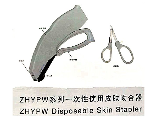 產品標準:YZB/蘇1314-2013一次性使用皮膚縫合器產品性能結構及組成:一次性使用皮膚縫合器由外殼、擊發(fā)手柄、釘倉組件、吻合釘組成,起釘器為選配。根據(jù)產品外形結構差異分為A、B、C三種型號,其中A型與B型均為握把式,C型為指按式;根據(jù)縫合釘數(shù)分為15、25、35三種規(guī)格;根據(jù)縫合釘成形后的外形尺寸分為常規(guī)型(R)和寬型(W)。推釘片材料為12Cr18Ni9、06Cr10Ni1、01Cr18Ni9Ti,縫合釘材料為00Cr18Ni14Mo3,殼體、釘倉組件材料為ABS、PC。產品應無菌。規(guī)格型號:AKPF(A/B/C)-15W、AKPF(A/B/C)-25W、AKPF(A/B/C)-35W、AKPF(A/B/C)-15R、AKPF(A/B/C)-25R、AKPF(A/B/C)-35R