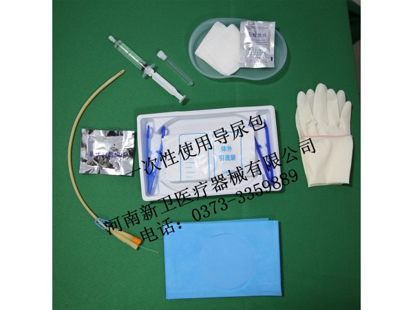 本公司生產(chǎn)的一次性使用導(dǎo)尿包是由一次性使用導(dǎo)尿管、引流袋、塑料鑷子、紗布疊片、洞巾、注水器、一次性使用橡膠檢查手套或橡膠外科手套或薄膜手套、治療巾、棉球、碘伏棉球、石蠟棉球、試管、限流器、器械盤(pán)等組成。