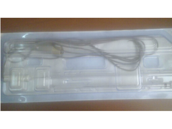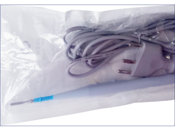 【生產(chǎn)許可證】蘇食藥監(jiān)械生產(chǎn)許2011-0099號【產(chǎn)品注冊證】蘇食藥監(jiān)械(準)字2012第2250657號【產(chǎn)品名稱】一次性使用手術電極【產(chǎn)品執(zhí)行標準】YZB/蘇0641-2012【產(chǎn)品專利號】 ZL201220019730.2【產(chǎn)品規(guī)格】SP-EKP-I型、SP-EKP-II型、SP-EKP-III型【主要性能結構及組成】 產(chǎn)品主要由刀頭、柄部、手控開關、電源線等組成。刀頭采用不銹鋼制造,柄部采用ABS或其他無毒塑料制造,電源線采用高頻電纜。刀頭表面光滑無明顯機械損傷。電刀柄頭頭部與柄部能承受50HZ、額定附件電壓3000V1.2倍的正弦波試驗電壓,歷時1min無擊穿和閃絡現(xiàn)象;電刀柄電纜能承受30s的1.5倍于所連高頻手術設備最大開路高頻電壓試驗,不發(fā)生擊穿和閃絡現(xiàn)象。產(chǎn)品無菌,經(jīng)環(huán)氧乙烷滅菌,放置7天后,其殘留量不大于10ug/g。【適用范圍及用途】 一次性使用手術電極作為高頻手術設備配件,使用環(huán)境要求為溫度為18℃-26℃,濕度為45%-65%,適用于頻率在0.3MHZ~5MHZ范圍,輸出功率在50W~300W范圍的高頻手術設備,用于臨床手術對組織進行電切、電凝用,為一次性使用產(chǎn)品?!臼褂梅椒ā?.撕開單包裝啟封口,取出產(chǎn)品。2.將插頭插入相應的高頻設備。3.打開高頻設備開關,選擇適宜的電流參數(shù)。4.按下黃色按鈕為電切,按下藍色按鈕為電凝。