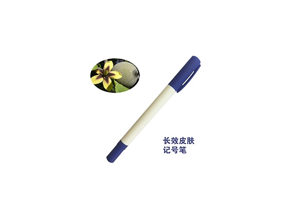 長效皮膚記號筆由卷包芯、墨水、滌綸纖維筆頭、筆桿和筆帽組成,其中墨水由水、酒精和天然植物提取物組成。墨水采用純天然植物染